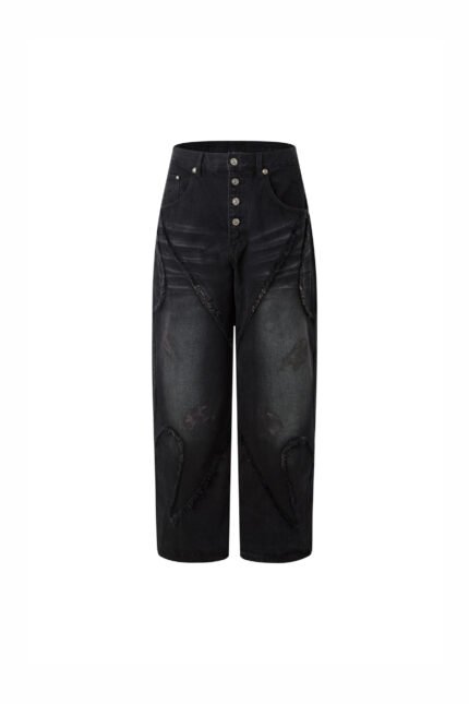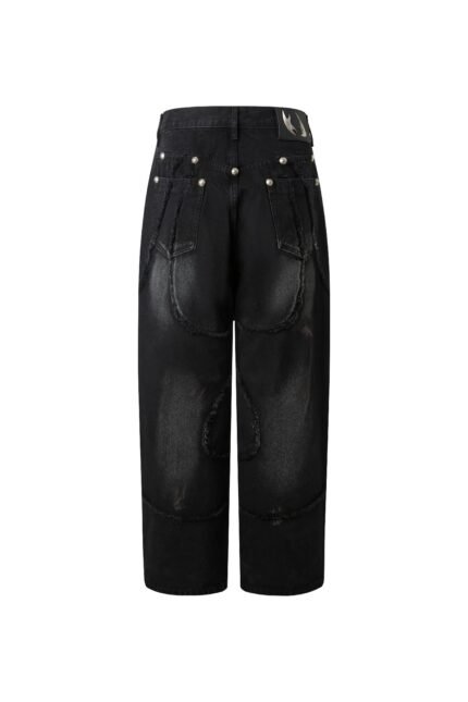 - The studded side seams highlight an avant-garde edge, perfectly blending the ruggedness of vintage workwear with the distinctive personality of high fashion.