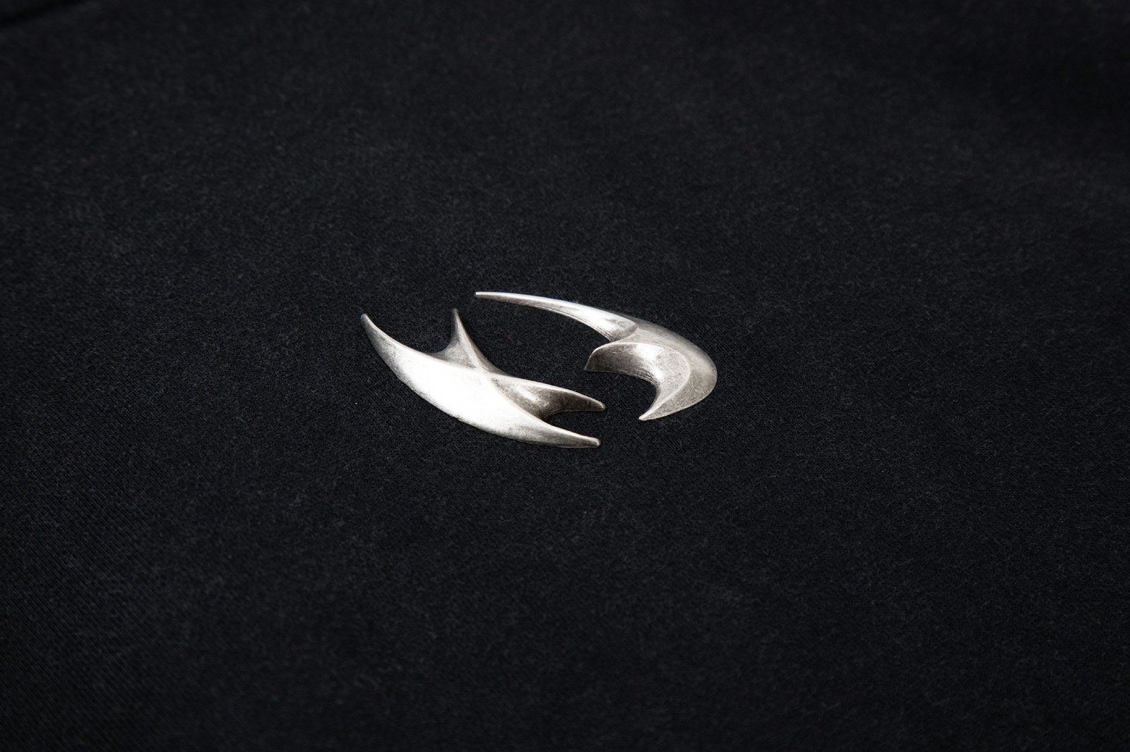 • A ring of studs accents the hood brim, complemented by a metal logo plaque on the chest for a bold, premium touch.